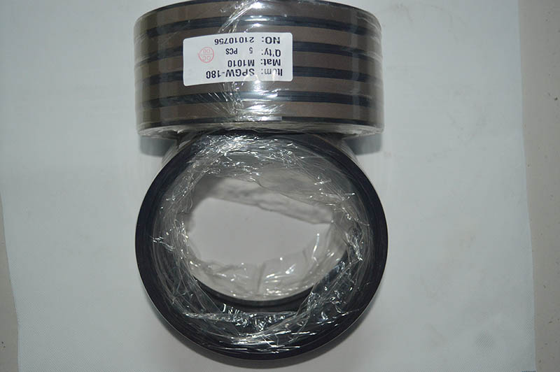 SPGW組合密封圈包括一個(gè)彈性齒狀密封圈、兩個(gè)擋圈和兩個(gè)耐磨環(huán)。在中間有一個(gè)真正起密封作用的密封元件;而在每一邊各放置一個(gè)擋圈和一個(gè)耐磨環(huán)。擋圈防止密封圈被擠出到間隙中去;中間的密封圈是齒狀密封圈,在靜止和運(yùn)動(dòng)時(shí)都能起良好密封作用。耐磨環(huán)的作用是在缸體內(nèi)對(duì)活塞導(dǎo)向,并且承受徑向力。